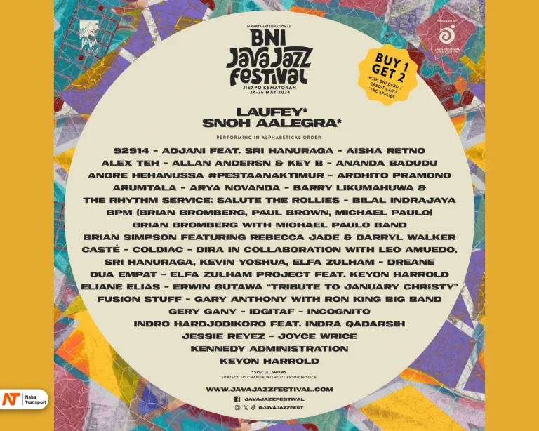 Jangan sampai ketinggalan untuk menikmati berbagai penampilan spektakuler ini dan rasakan sendiri kehebohan konser dan festival musik di Jakarta sepanjang tahun 2024! Untuk pengalaman konser yang lebih nyaman dan menyenangkan, jangan lupa untuk menggunakan layanan sewa mobil dari NabaTransport. Dengan berbagai pilihan kendaraan seperti Raize dan Brio yang gesit, Xenia dan Xpander yang mampu mengangkut lebih banyak orang, hingga kendaraan untuk rombongan besar seperti Hiace atau Elf Long. Jika ingin tampil lebih bergaya, Anda bisa memilih mobil premium seperti Alphard dan Pajero. NabaTransport juga menyediakan layanan driver untuk kenyamanan ekstra. Sewa mobil di Jakarta kini lebih mudah dan praktis dengan NabaTransport. Nikmati perjalanan ke konser favorit Anda dengan nyaman dan aman!