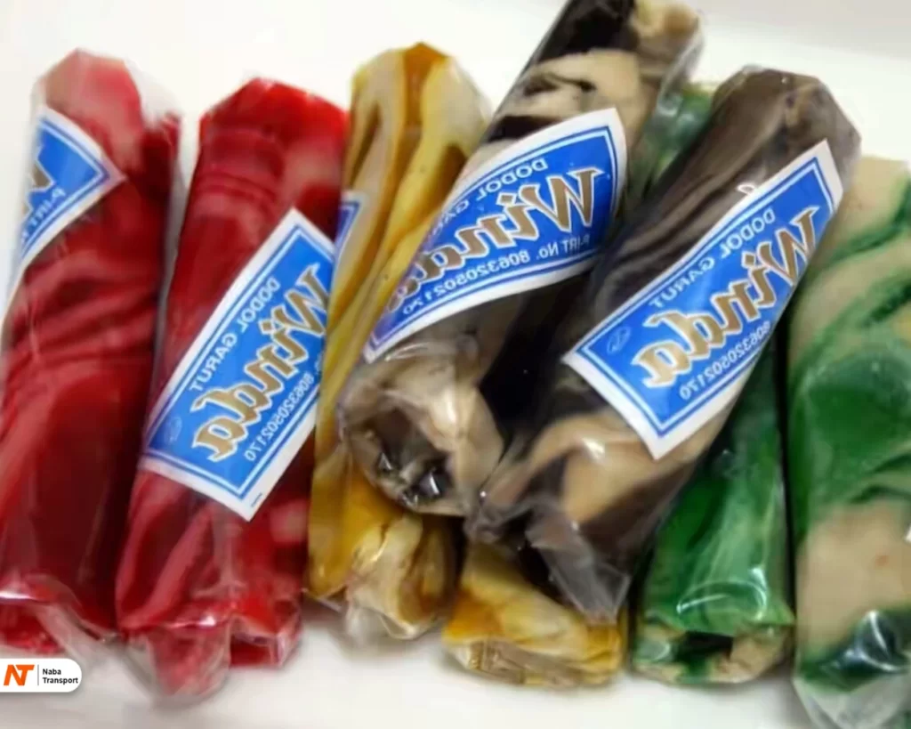 Inovasi yang menghadirkan varian warna dan rasa pada dodol kacang Garut. Dengan menggunakan bahan alami seperti daun pandan, umbi ubi ungu, atau buah-buahan, dodol kacang tradisional ini diwarnai menjadi berbagai macam warna cerah. Selain memberikan tampilan yang menarik, varian ini juga menghadirkan sensasi rasa yang berbeda-beda sesuai dengan warna yang digunakan. Sebagai contoh, dodol warna merah mungkin memiliki sentuhan rasa stroberi, sedangkan dodol warna hijau bisa memiliki aroma alami daun pandan. Varian yang satu ini tidak hanya enak, tetapi juga menjadi perpaduan yang indah antara tradisi dan kreasi modern.
