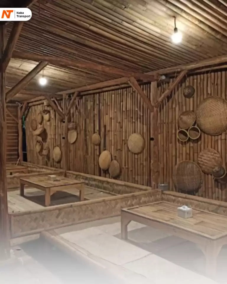Tempat makan ini mengusung konsep rustic dan tradisional. Hal ini ditandai dengan penggunaan material alami seperti kayu dan bambu pada interior ataupun eksteriornya. Suasana alami khas pedesaan juga ditunjang dengan penggunaan furniture mulai dari kursi, meja, hingga perlengkapan makanannya.