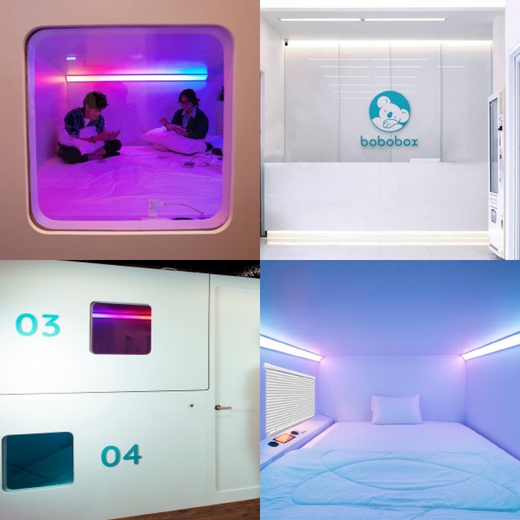 Hotel kapsul Bandung satu ini terdiri dari tiga lantai dengan jumlah kamar 62 buah, setiap kamarnya didesain dengan tipe sky dan earth. Di kamarnya juga Anda merasakan kecanggihan dari teknologi seperti papan layar sentuh untuk mengatur lampu kamar, mengunci pintu dan menentukan volume speaker. Fasilitas kasur dan kelengkapannya juga cukup nyaman. Untuk kamar mandi dan dapur serta ruang komunal tersedia di luar kamar, dan dipakai bersama tamu lain. Jadi kamu harus berbagi juga. Bobobox Pods Paskal berada di Jl. Pasir Kaliki No.76A, Pasir Kaliki, Kec. Cicendo, Kota Bandung, lihat di maps