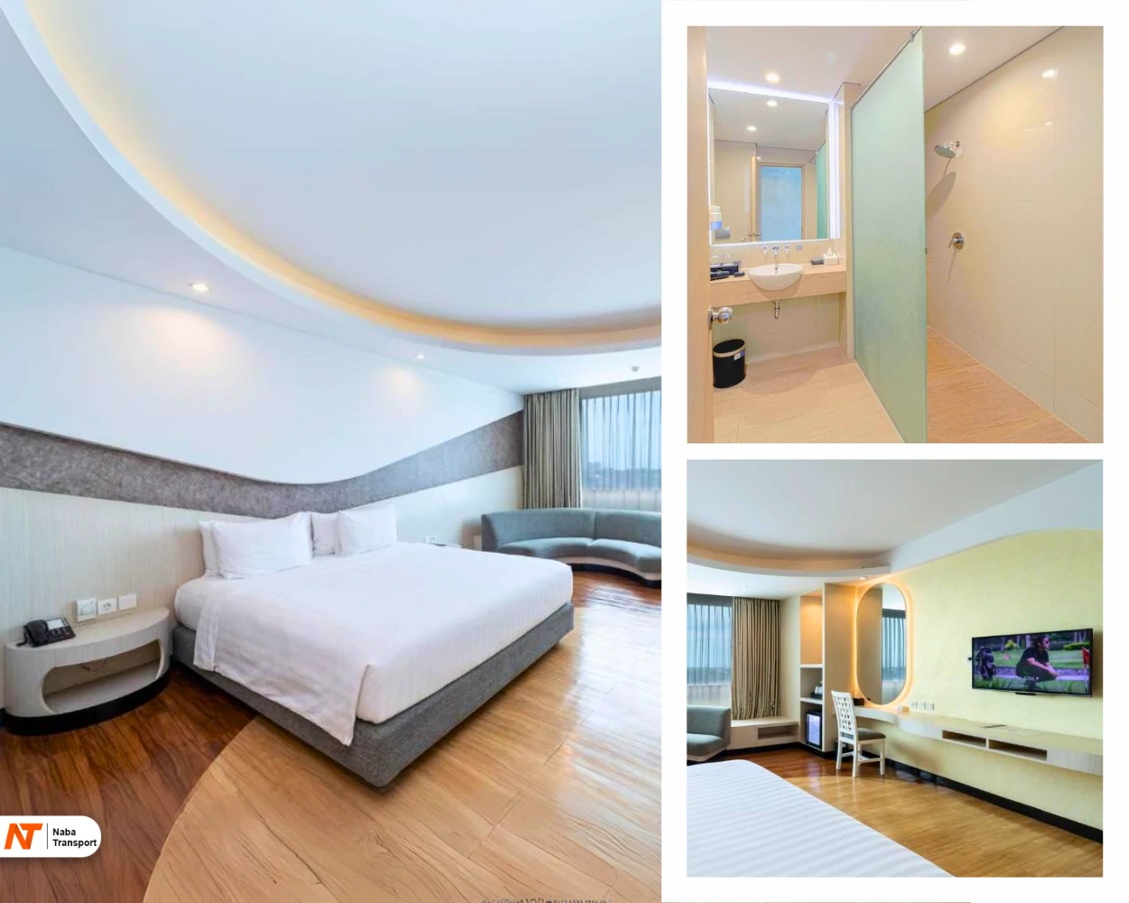 Kamar : AC, TV, WIFI, Mini Bar, Lemari, Desk, Brankas, Perlengkapan Kerja, Shower, dan Hair Dryer.